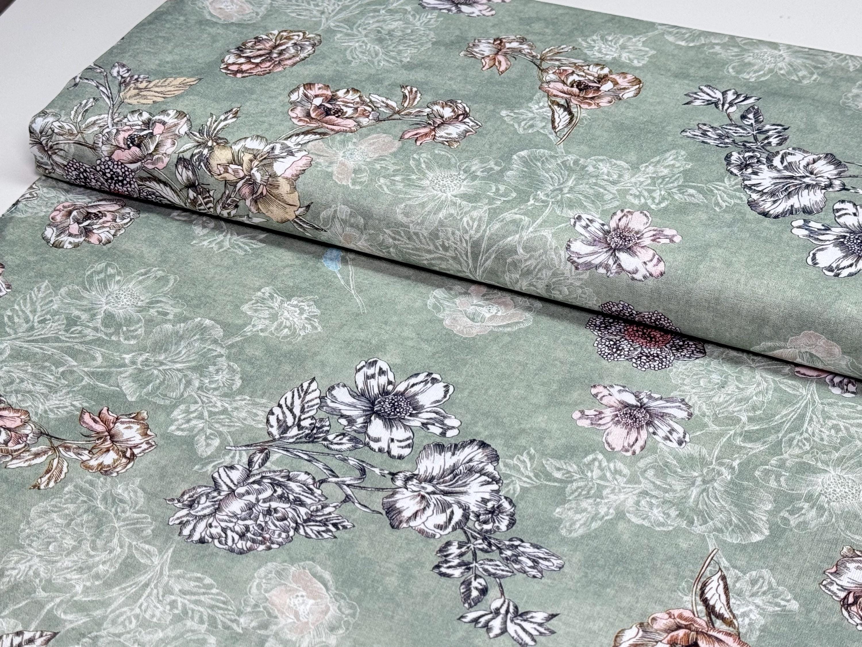 Cotton fabric with flowers on green