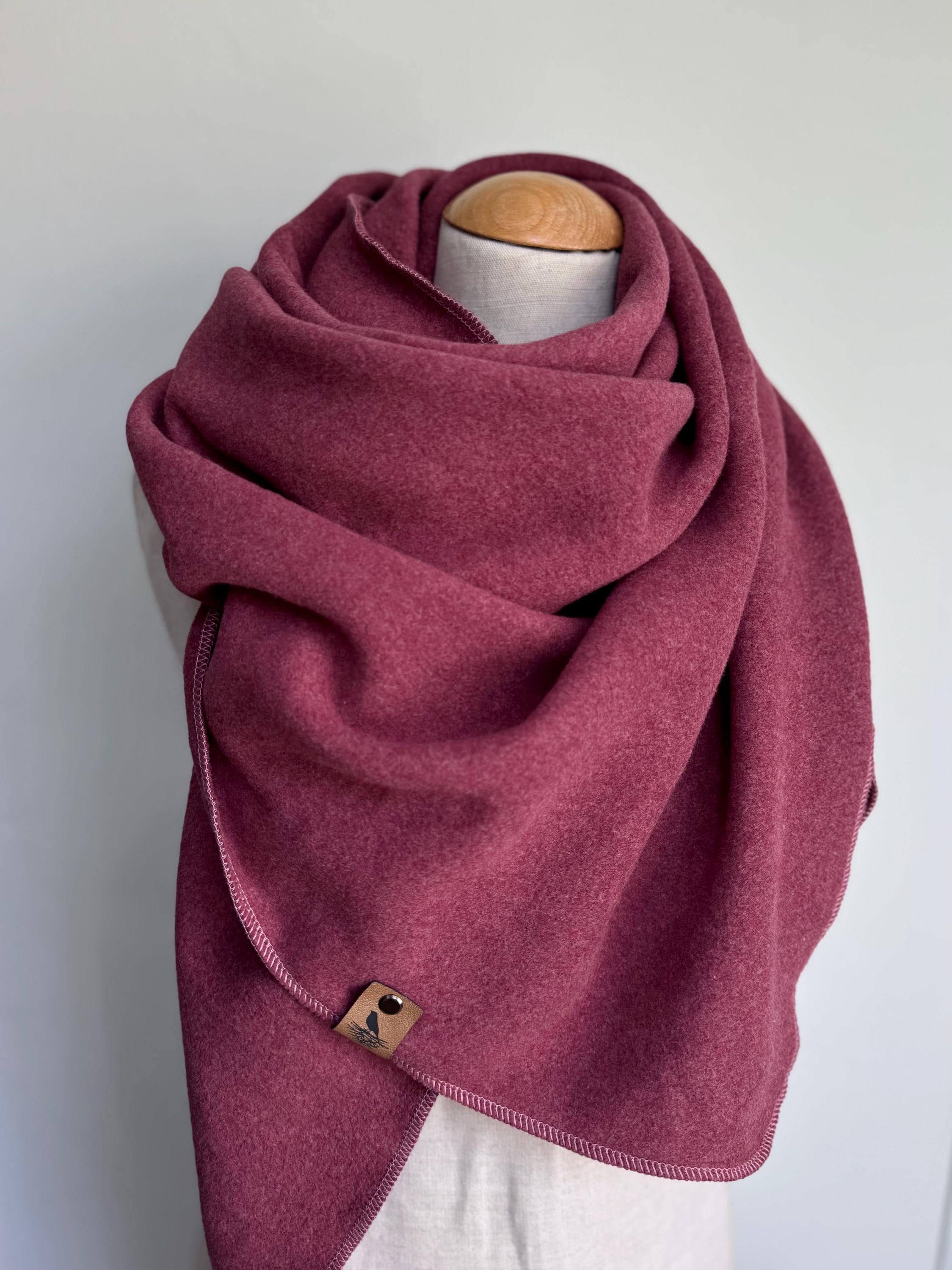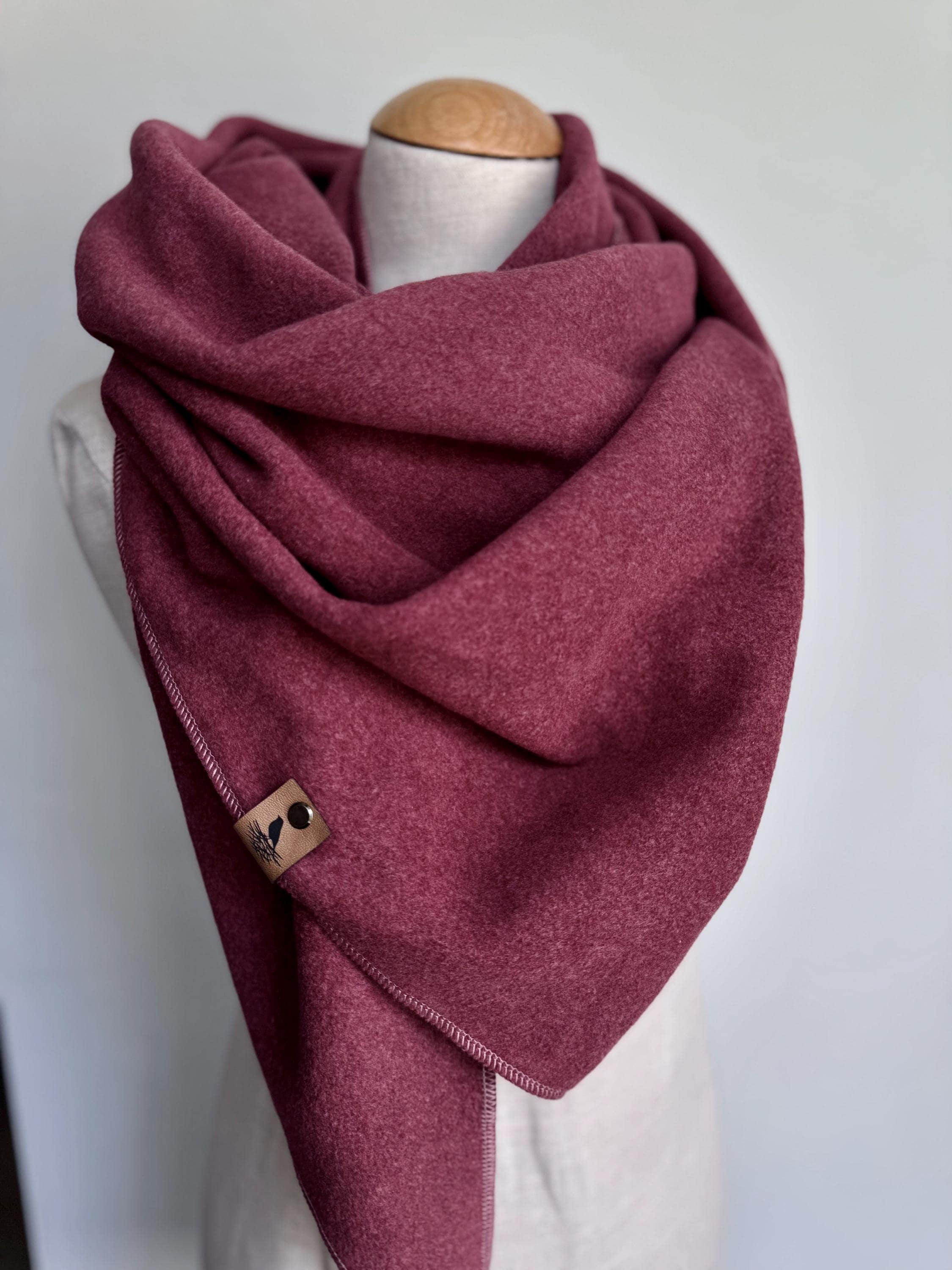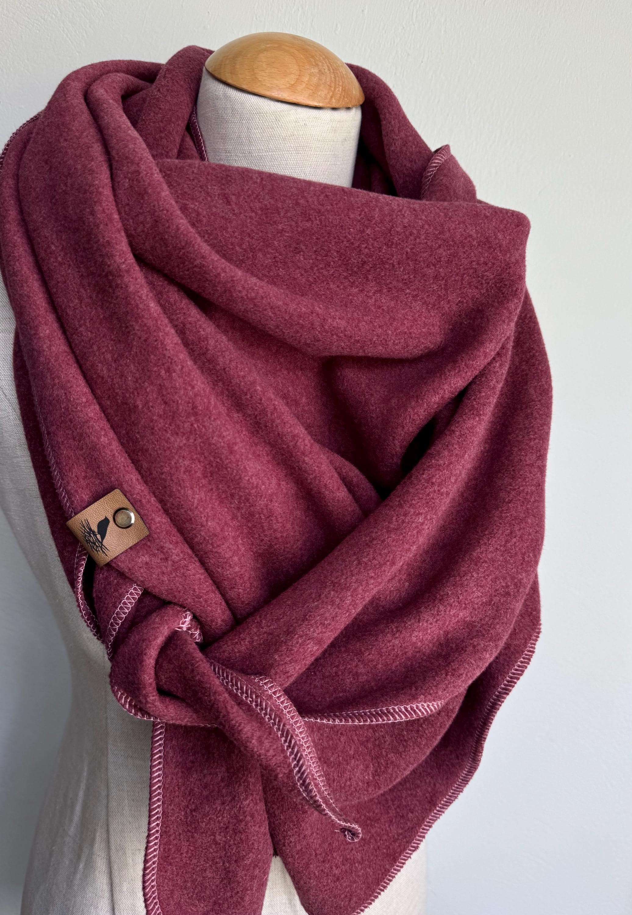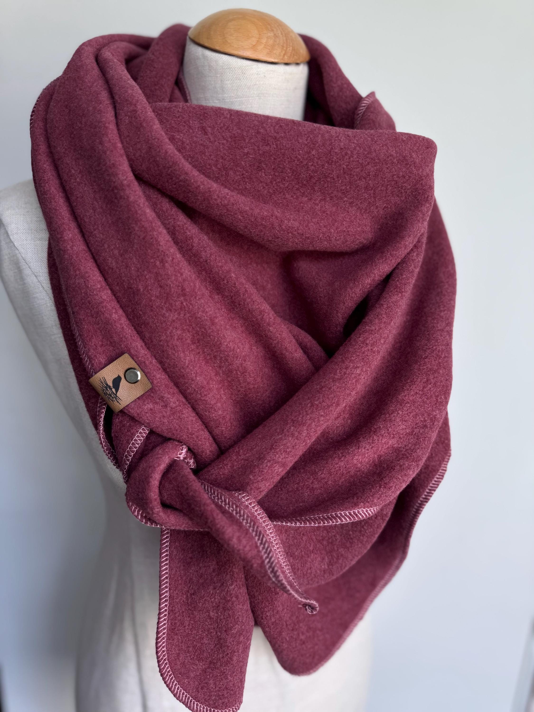 This triangular scarf is incredibly soft and cozy. It's made from cotton fleece and is a great size for snuggling up in.