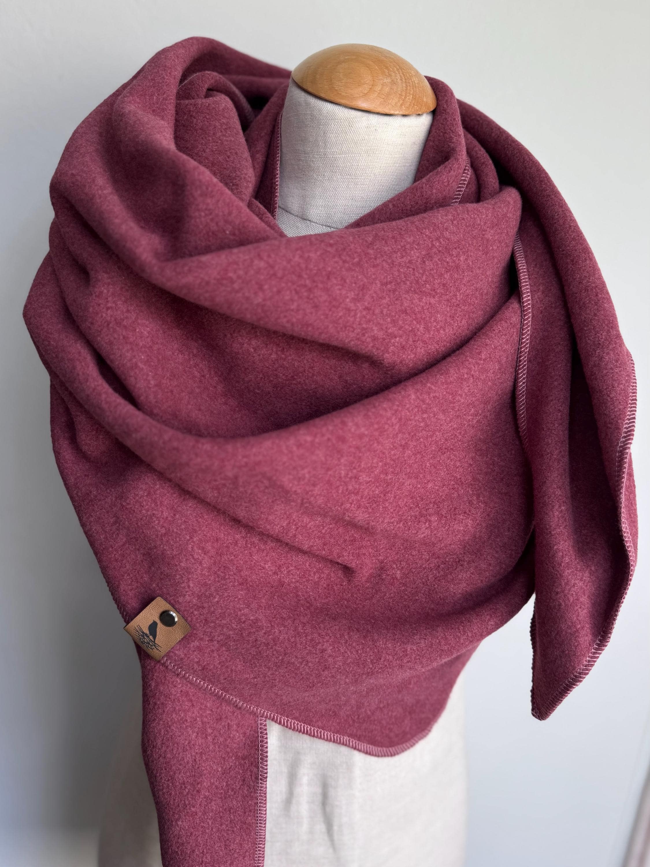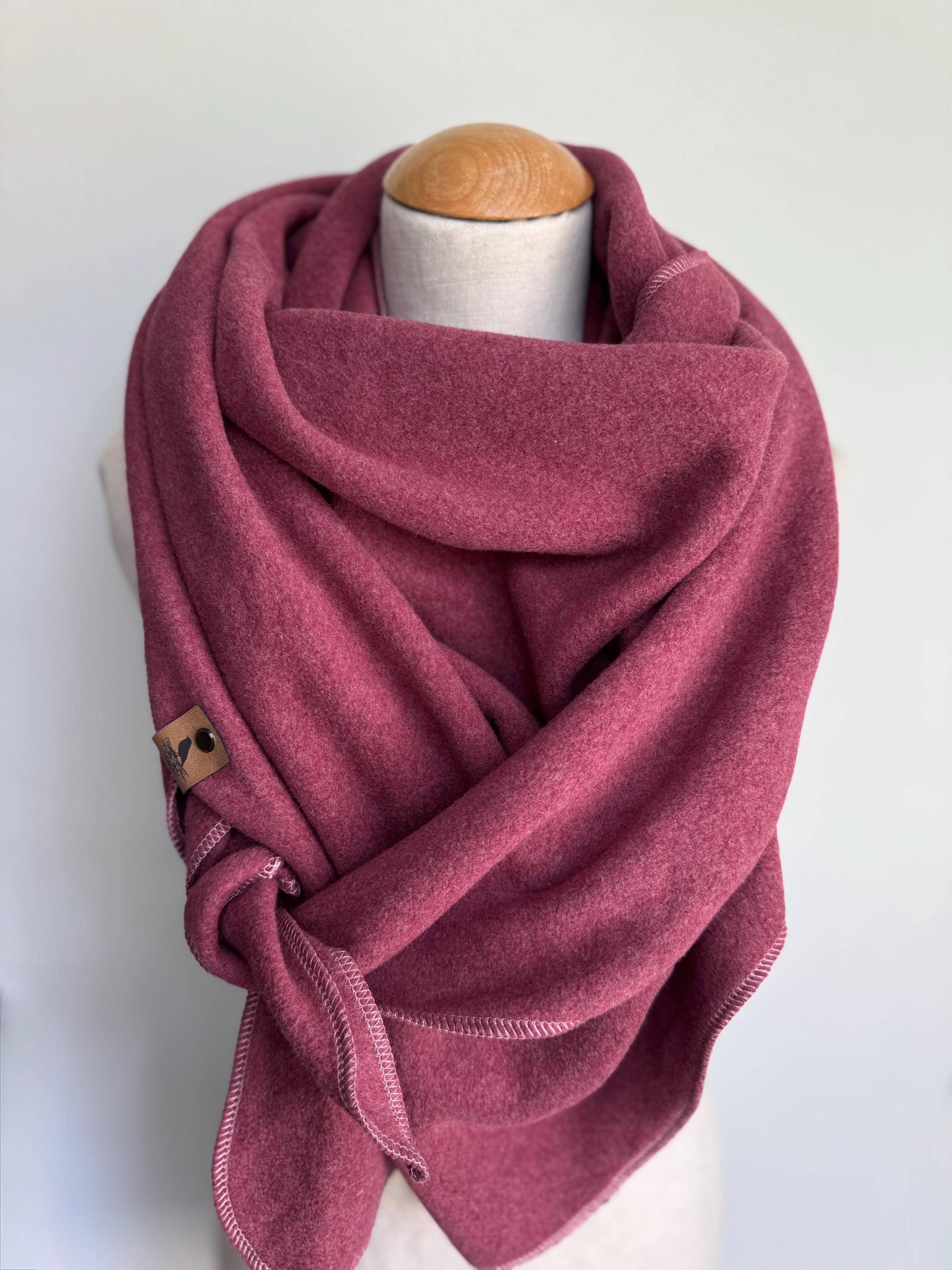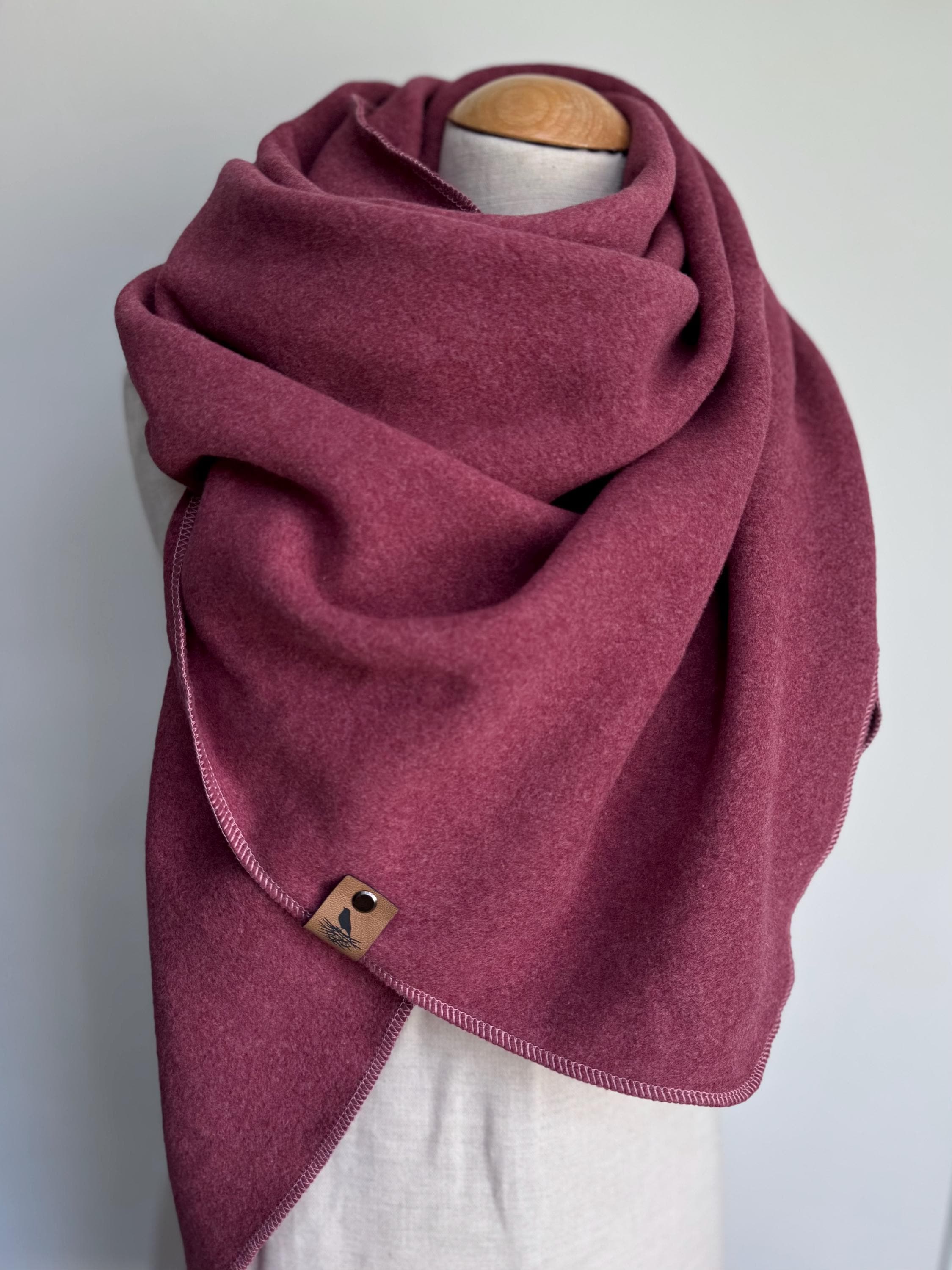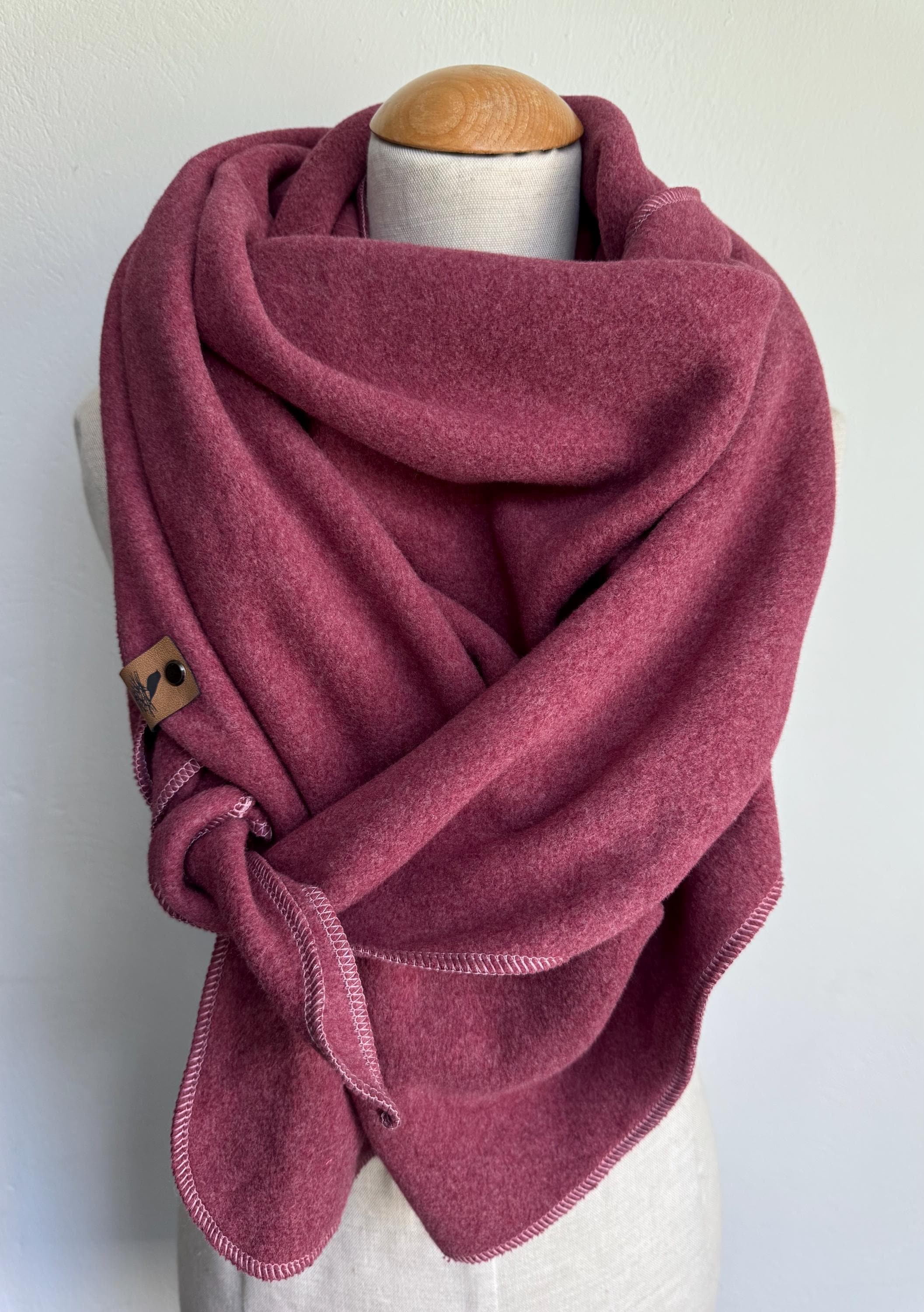 This triangular scarf is incredibly soft and cozy. It's made from cotton fleece and is a great size for snuggling up in.