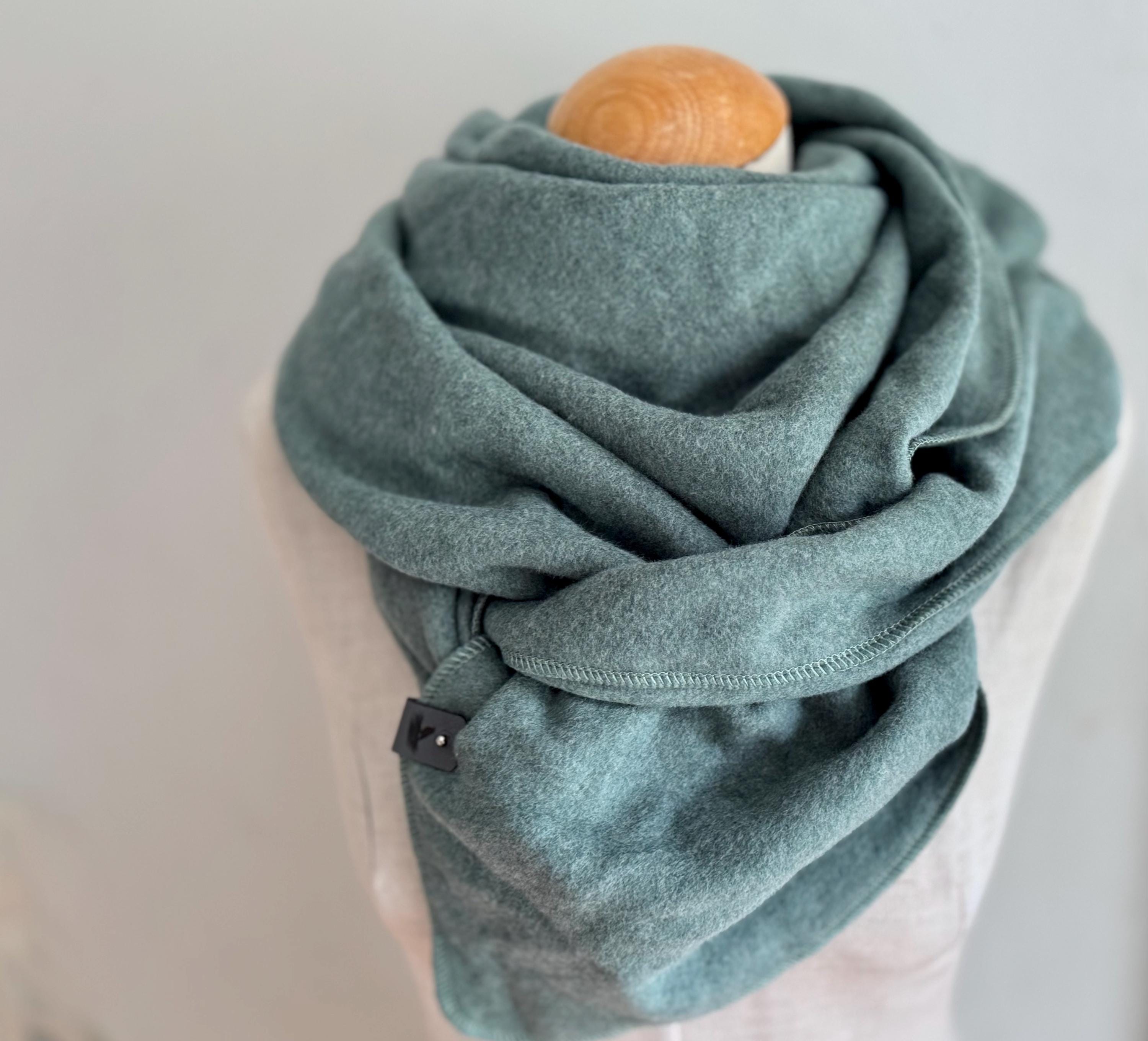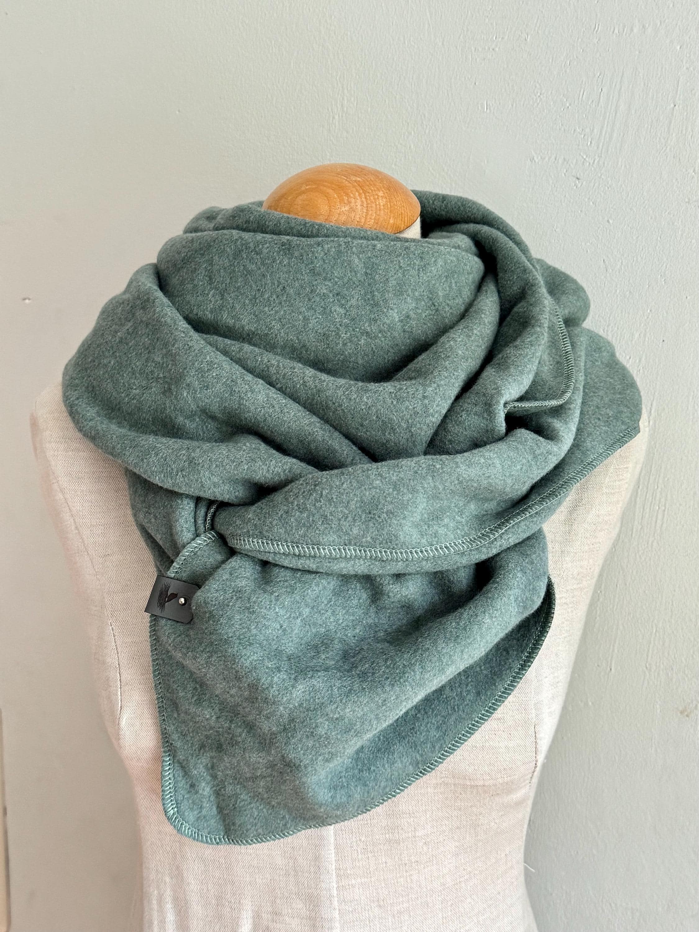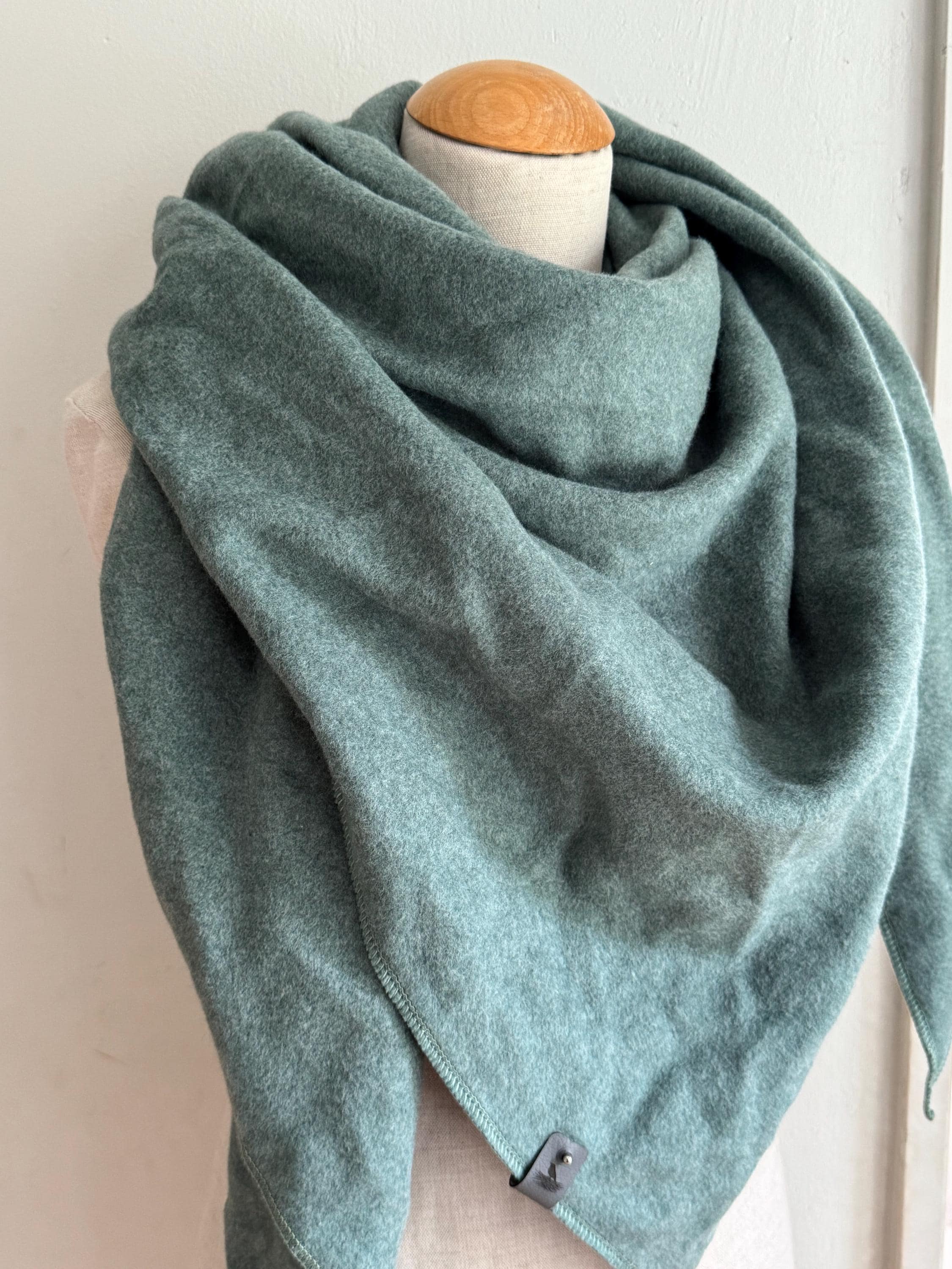 This triangular scarf is incredibly soft and cozy. It's made from organic cotton fleece and is a great size for snuggling up in.