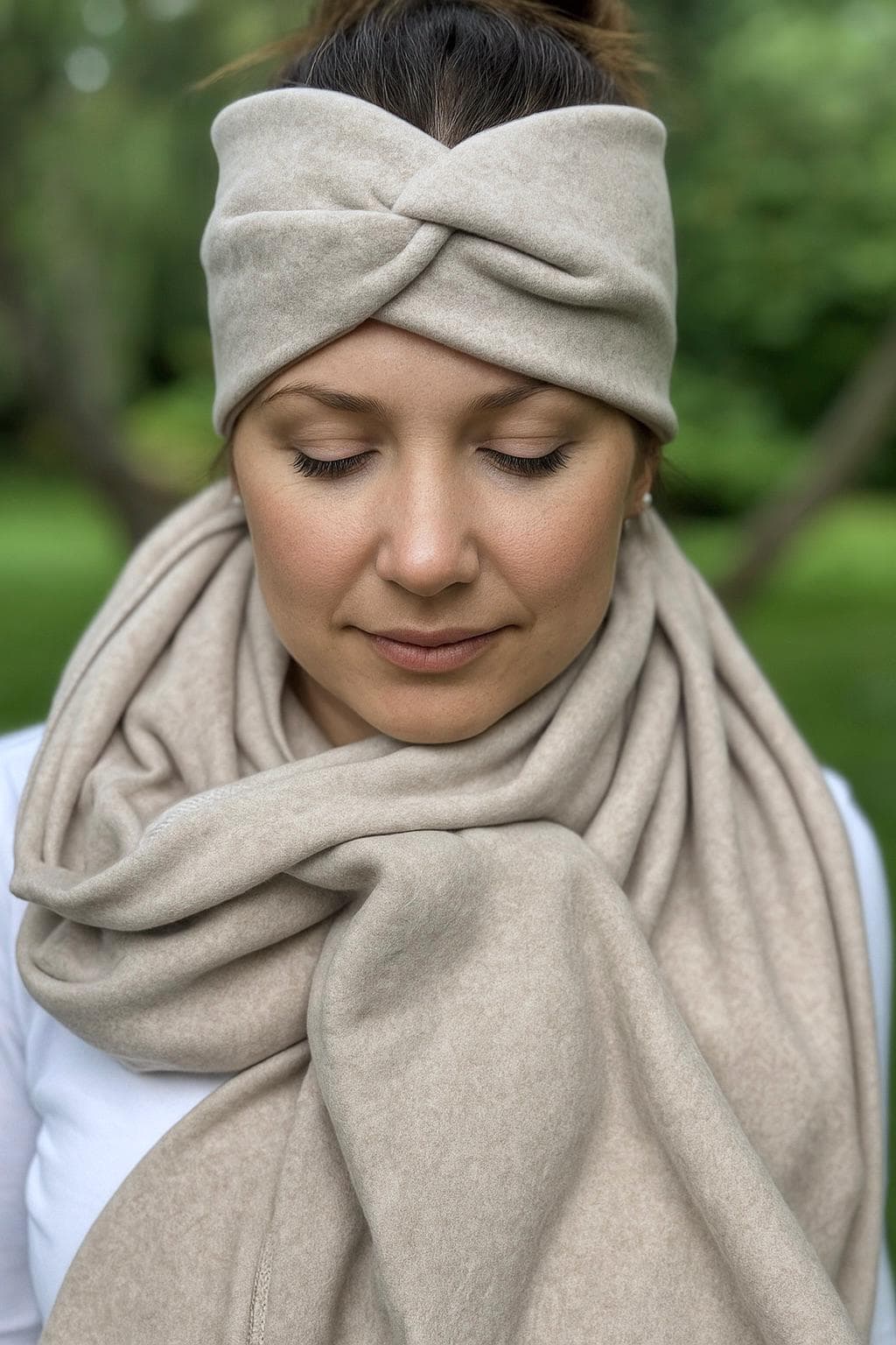 Versatile to use and ideal as a gift. The displayed scarf appears in the color sand. In our shop you’ll find other beautiful color options of the scarf.