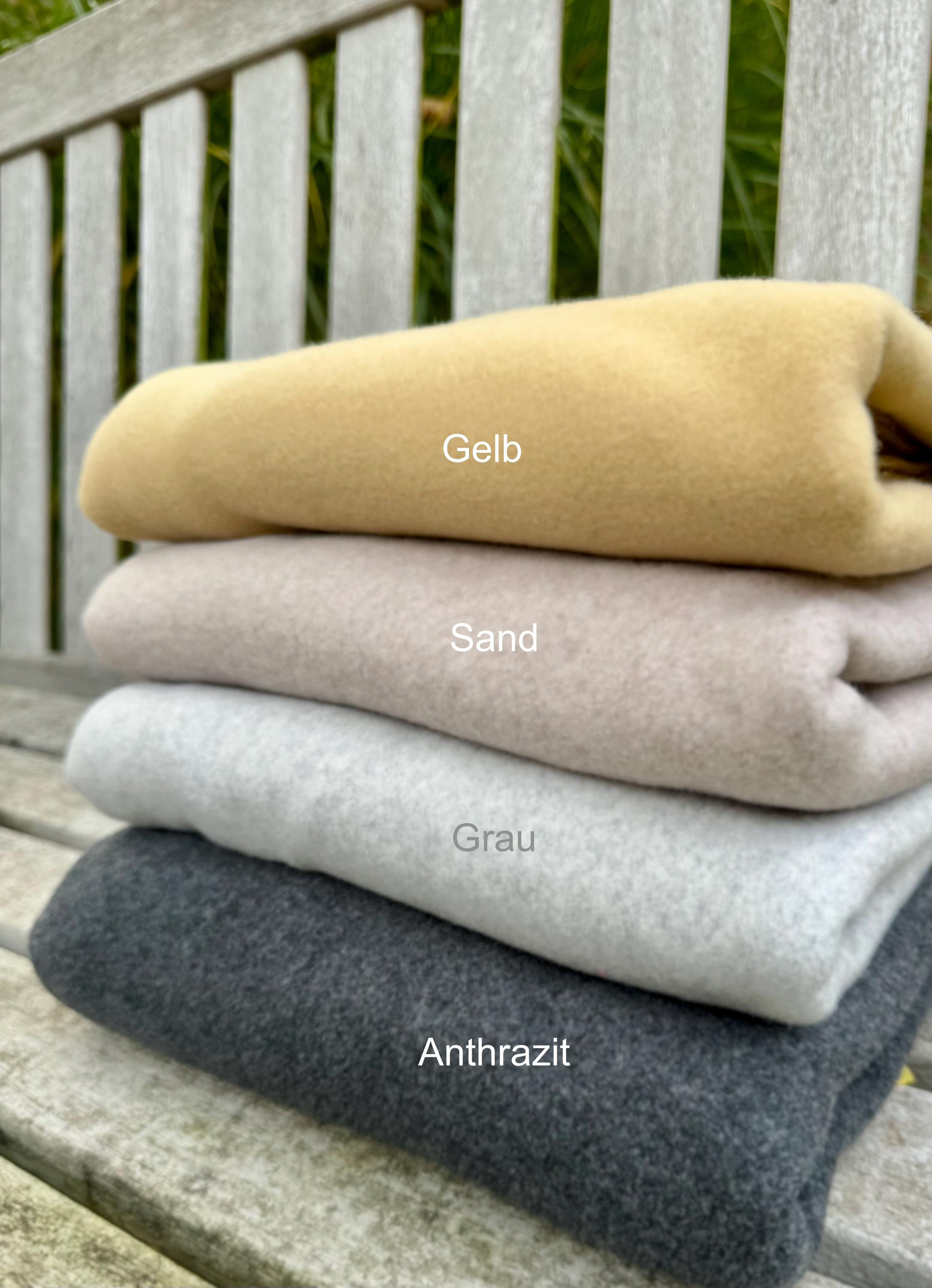 You’ll find the cotton fleece scarf in many other beautiful colors in our shop. The thread color is always perfectly coordinated, giving each piece its own unique and elegant look.