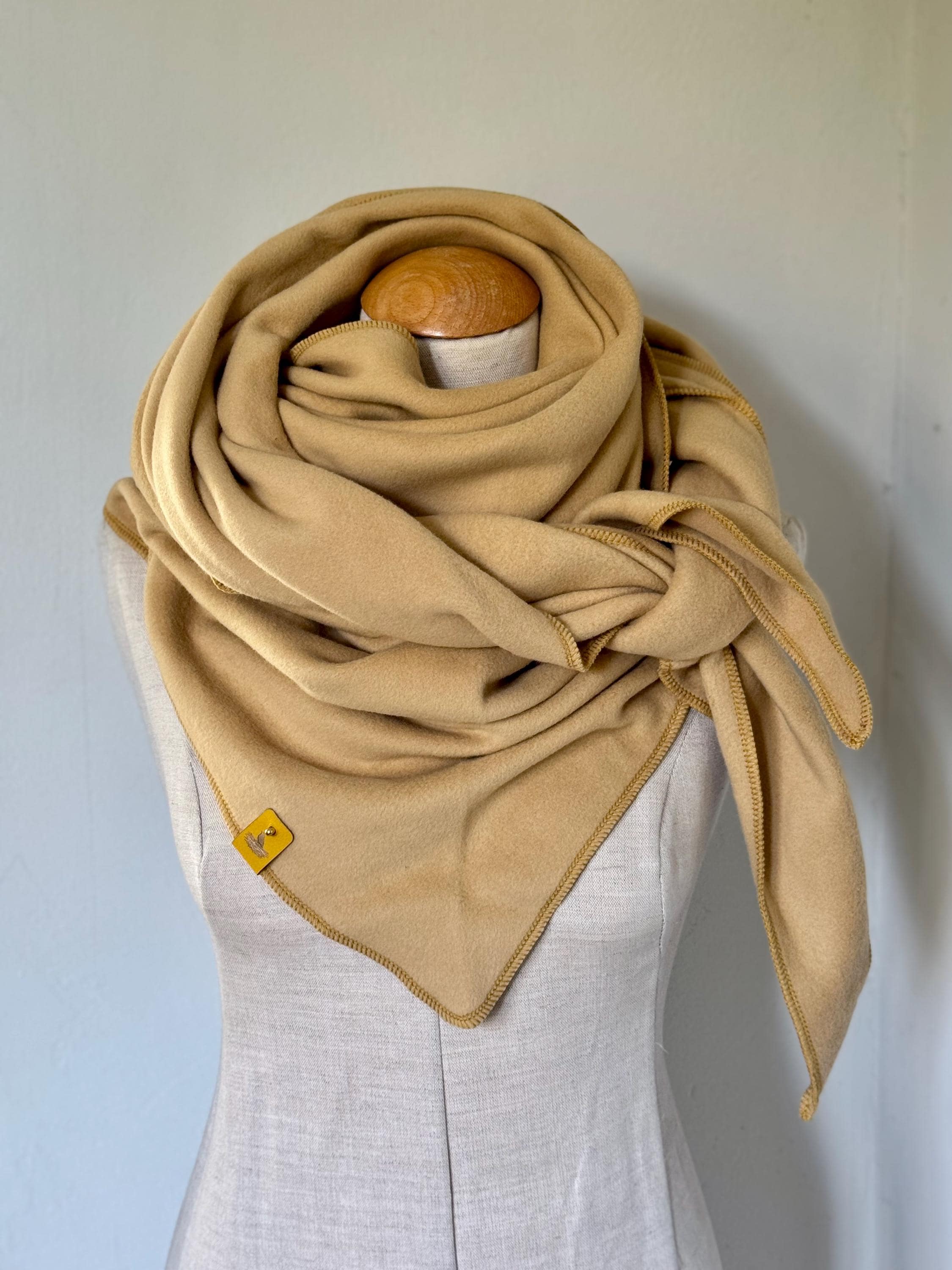 When the weather turns chilly, windy, or just plain gloomy, our Favorite Scarf made from 100% cotton fleece is here to save the day! This large, triangular scarf is buttery soft, warm, and incredibly snuggly – the perfect companion for autumn, winter, and cool summer evenings.