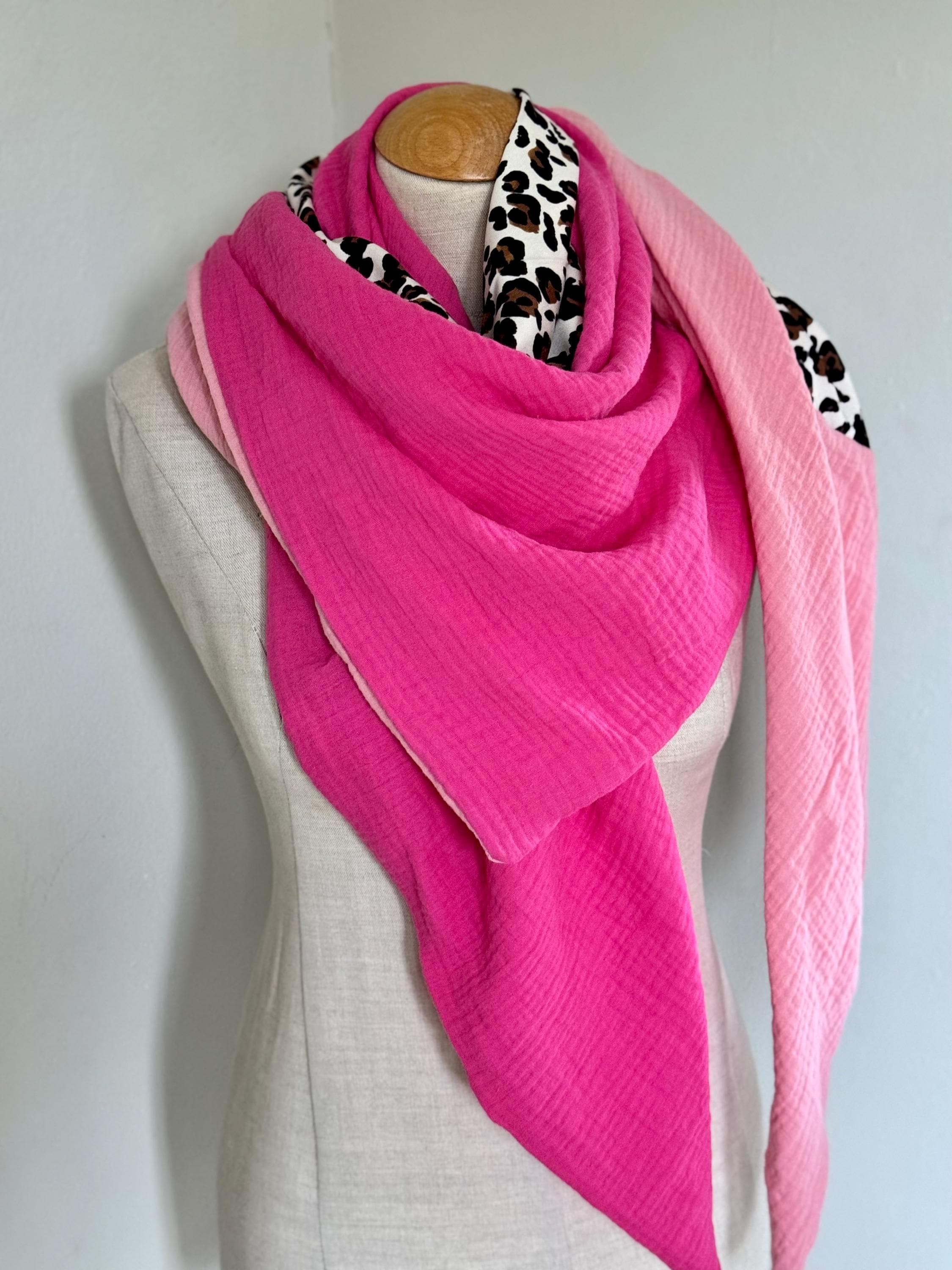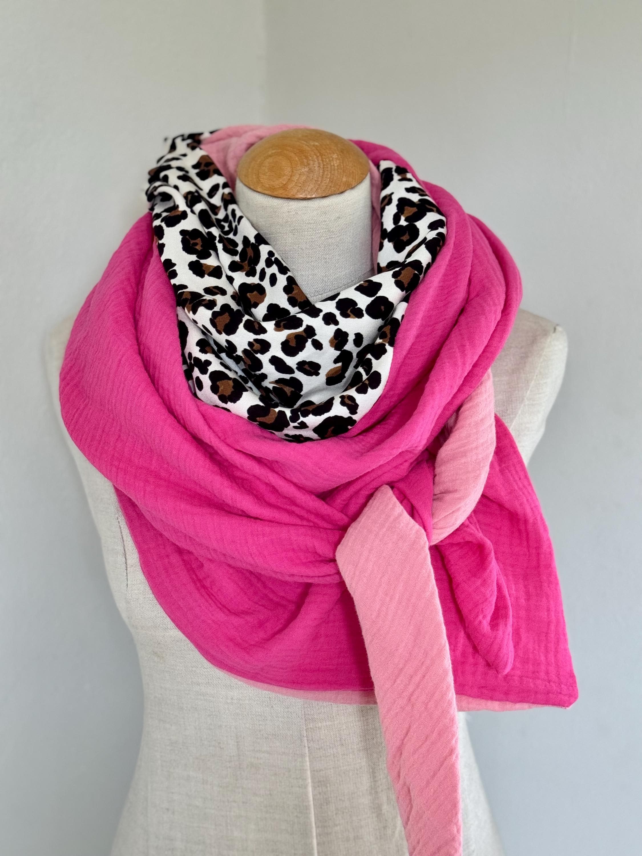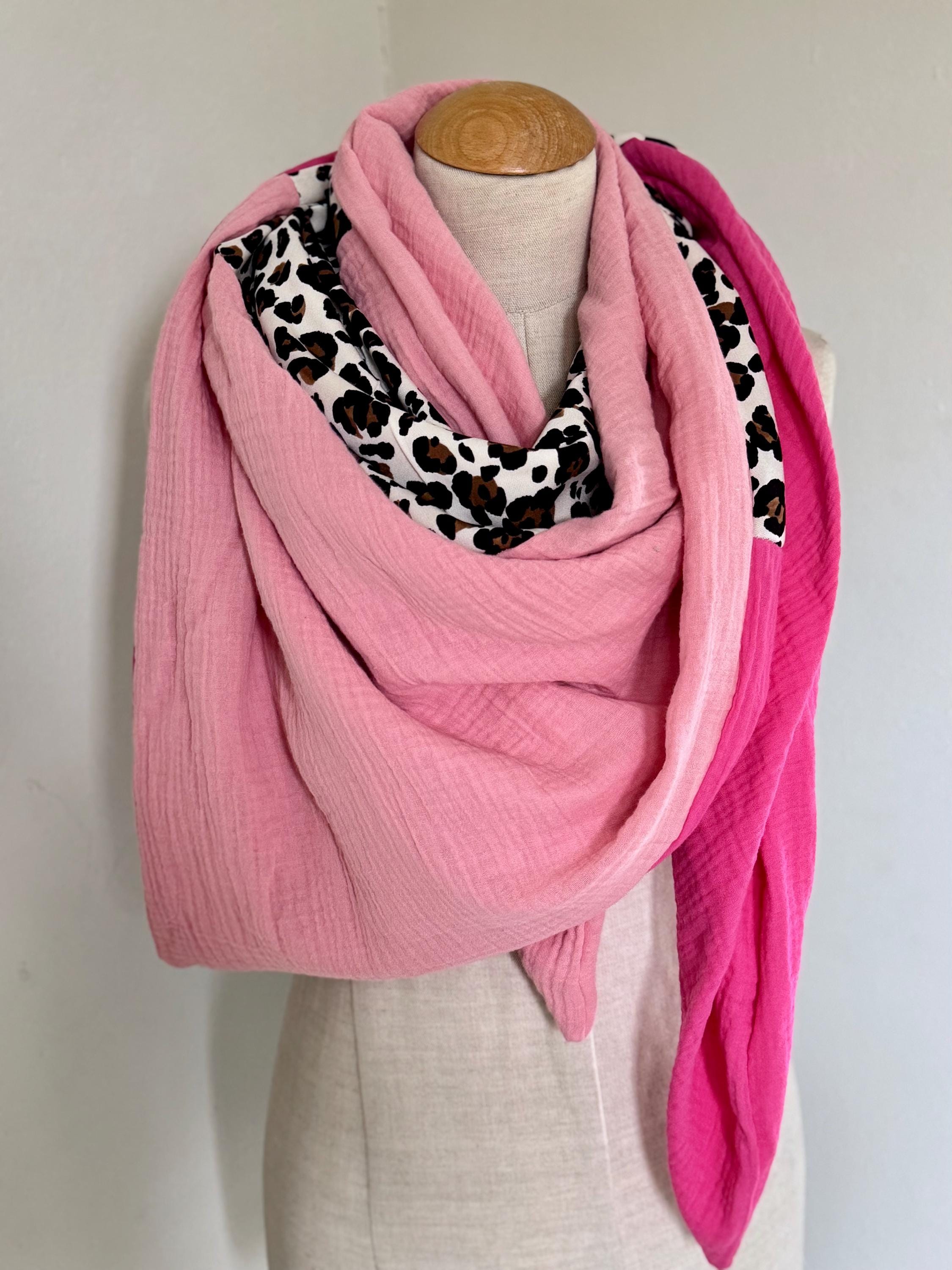 Materials: Muslin (100% cotton), Leopard print (100% viscose)