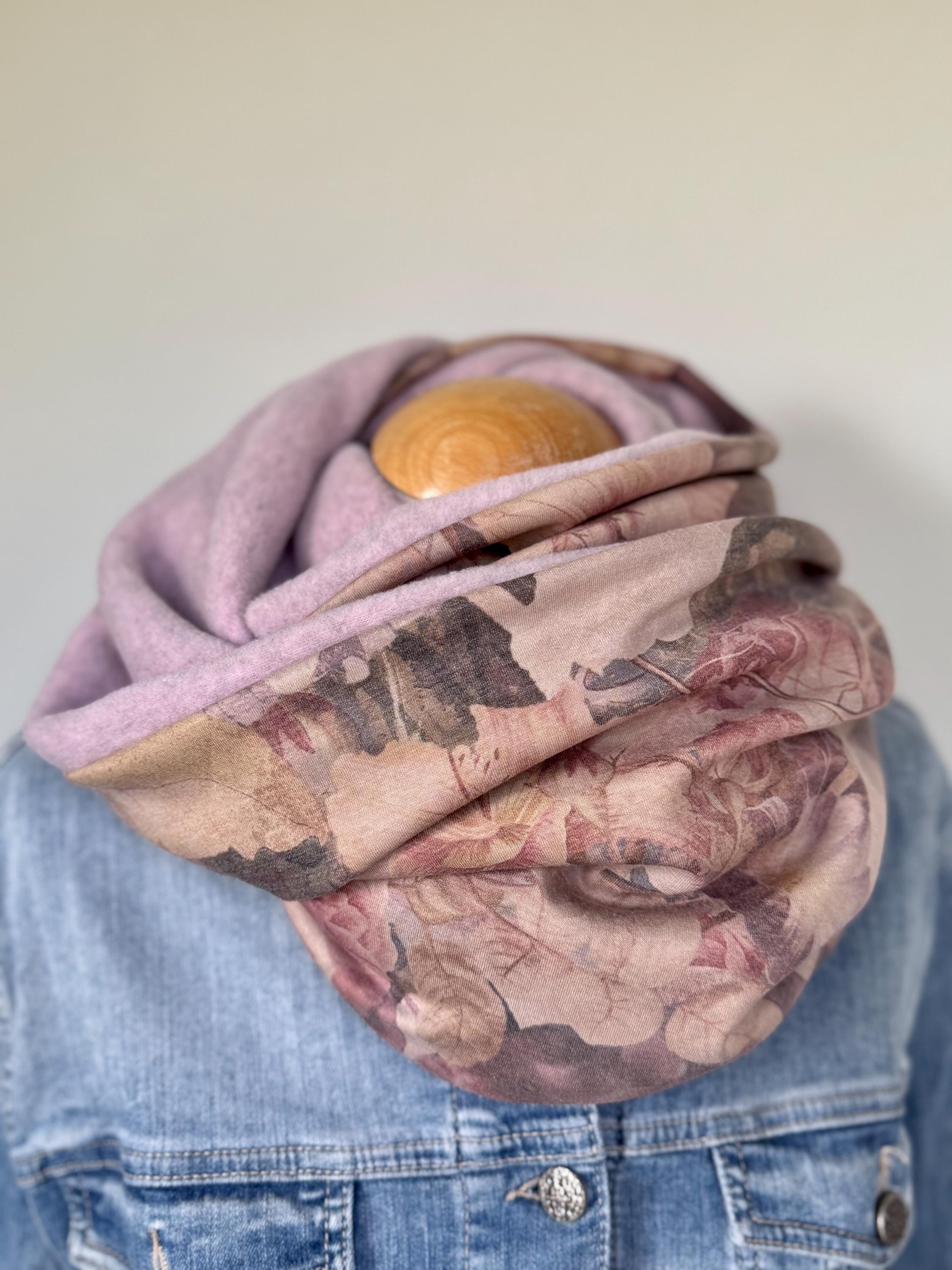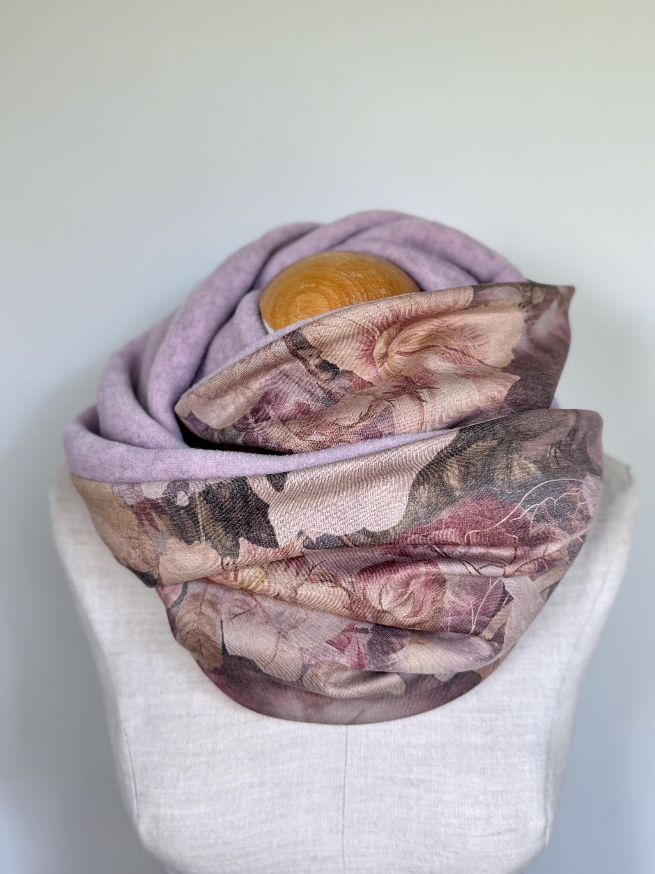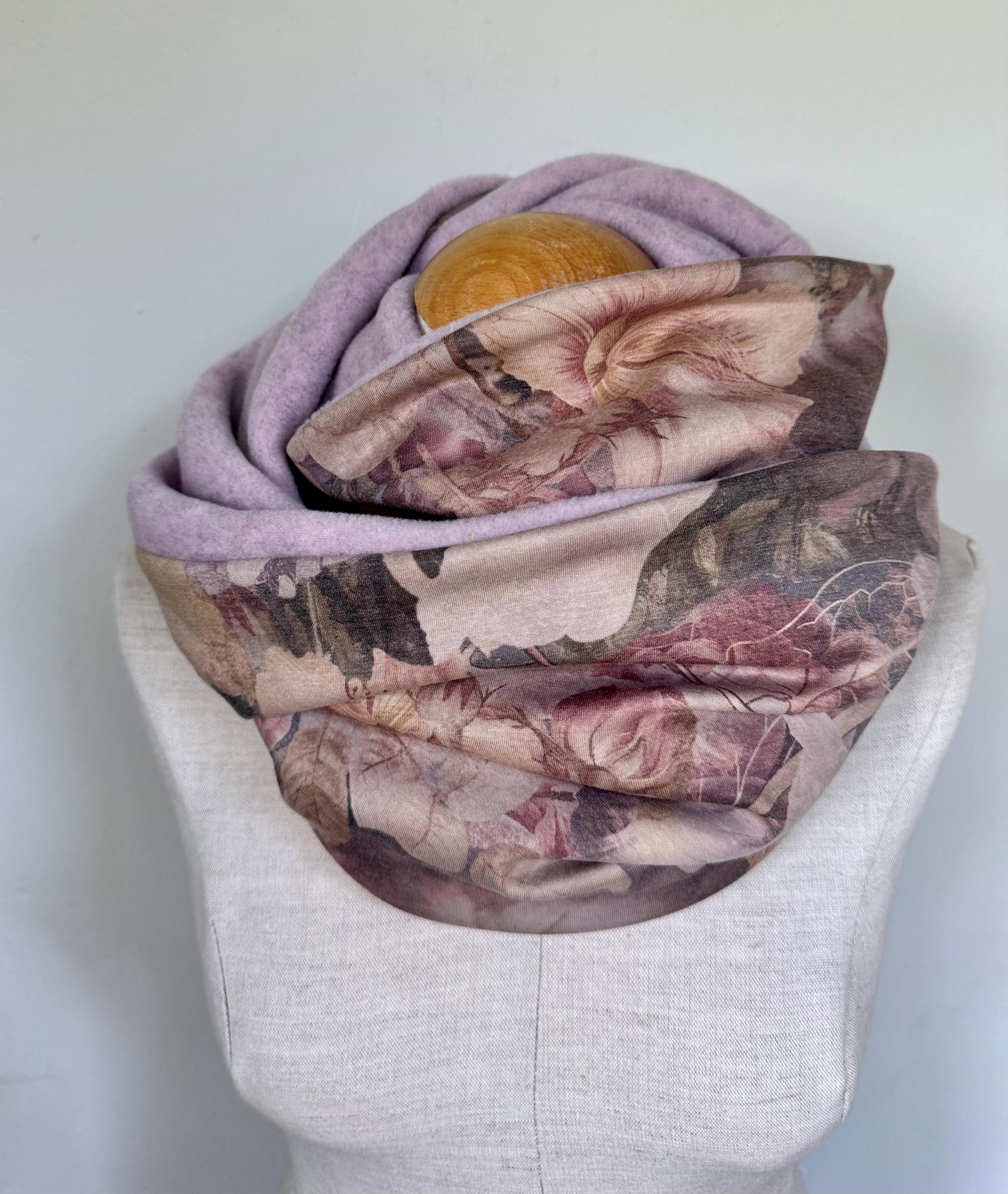 The combination of soft, heathered pink fleece and an elegant jersey with a large floral pattern makes this accessory a versatile companion for everyday wear. Whether for the office, the city, or walks on cool days – this scarf is always a perfect fit.