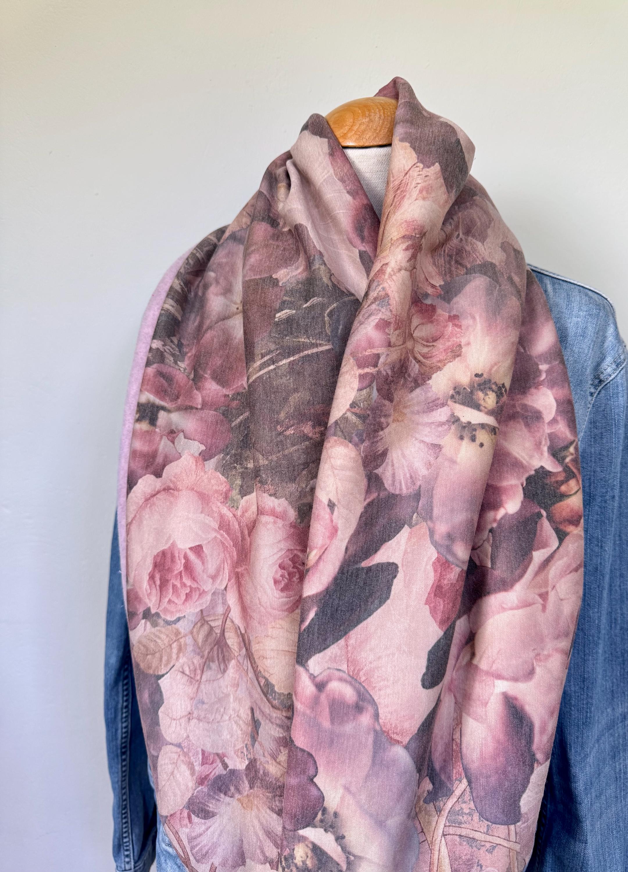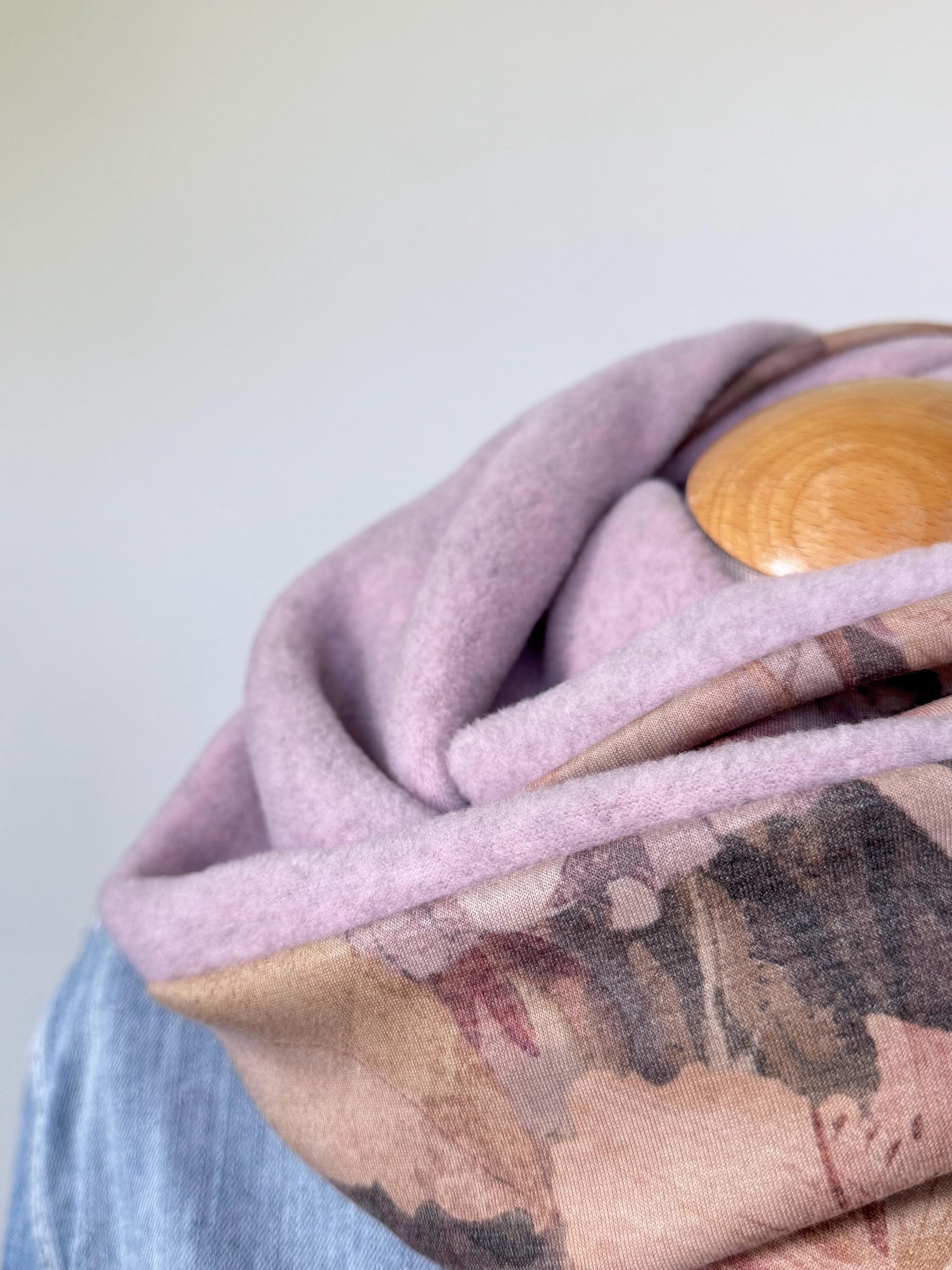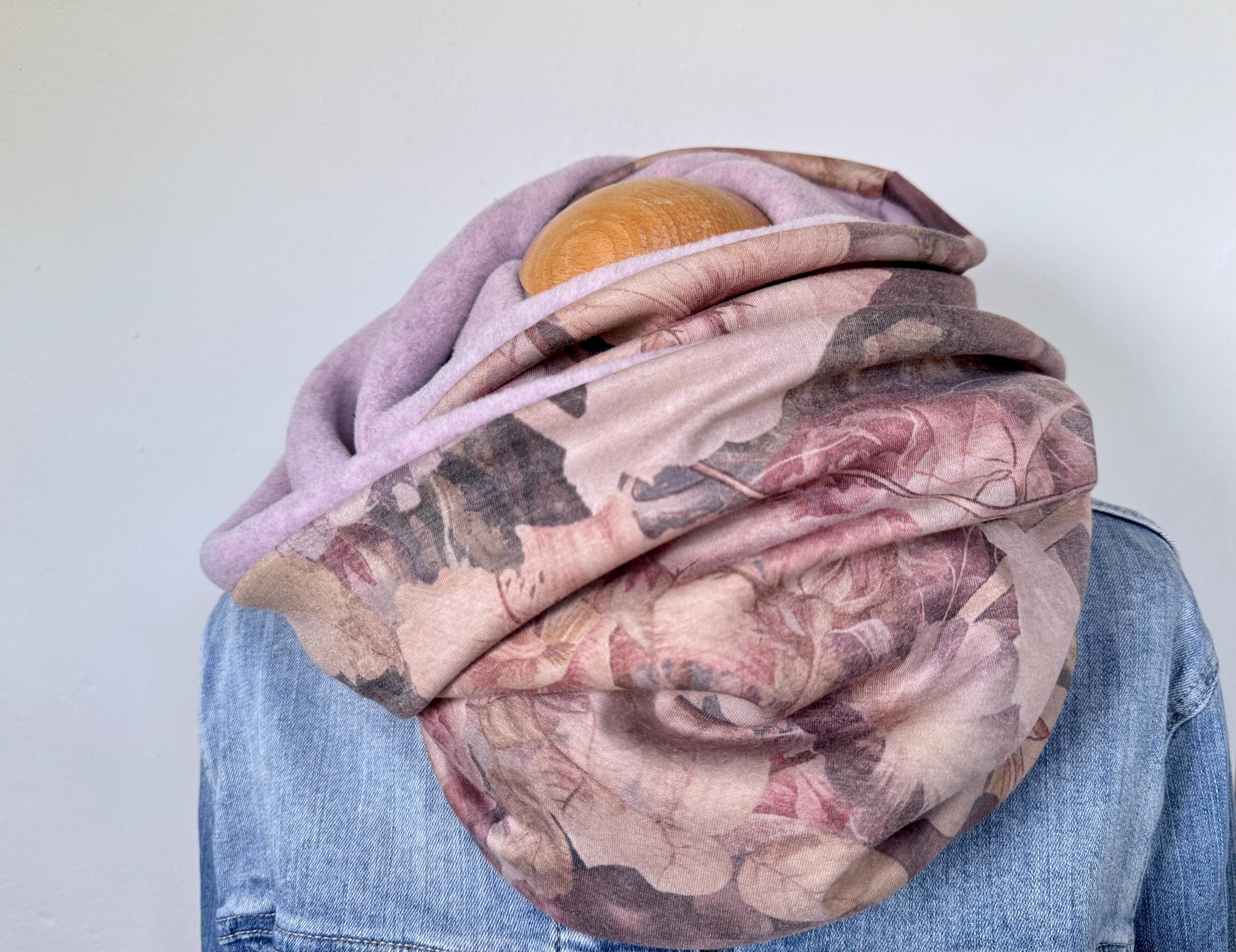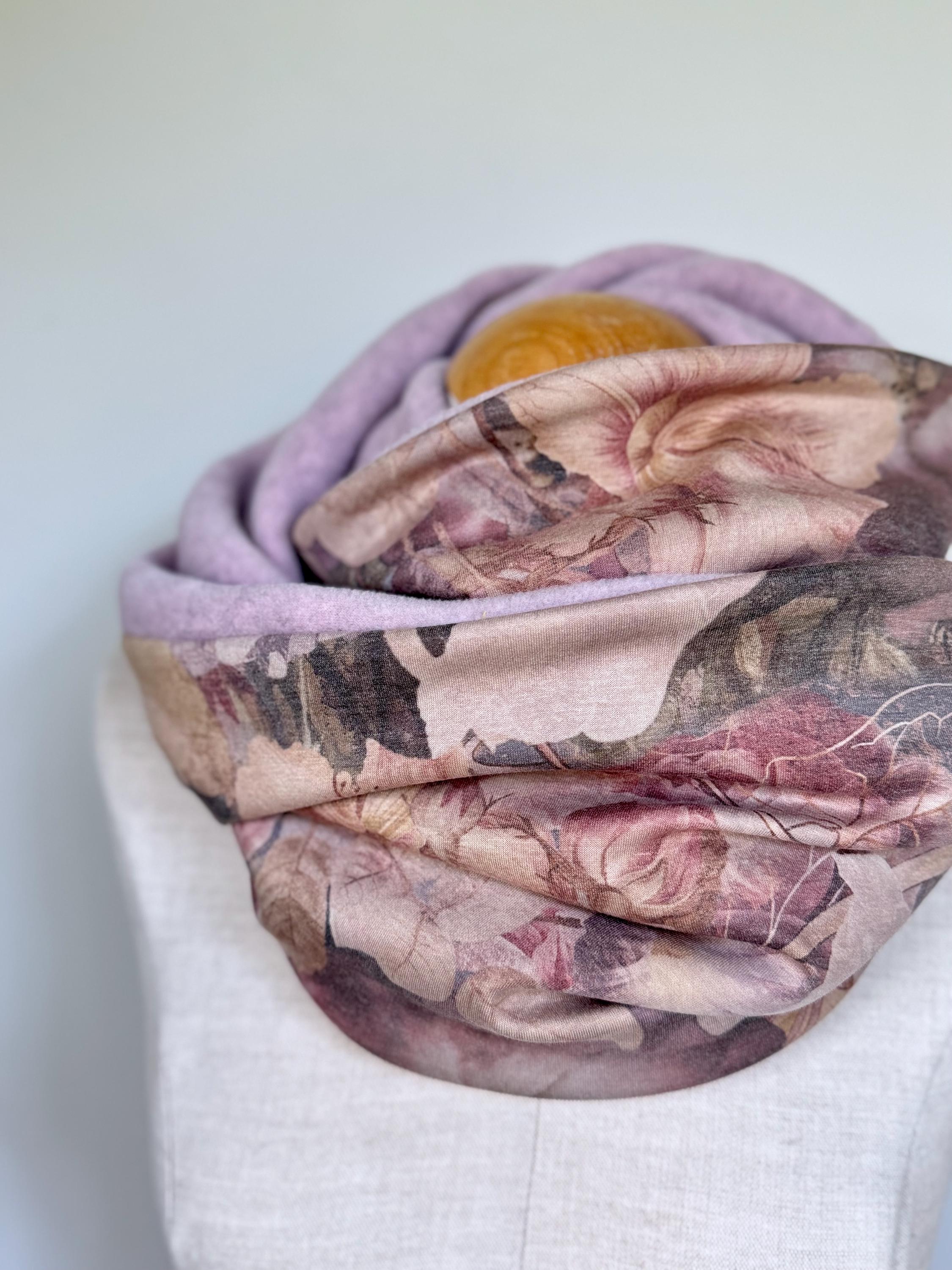 The combination of soft, heathered pink fleece and an elegant jersey with a large floral pattern makes this accessory a versatile companion for everyday wear. Whether for the office, the city, or walks on cool days – this scarf is always a perfect fit.
