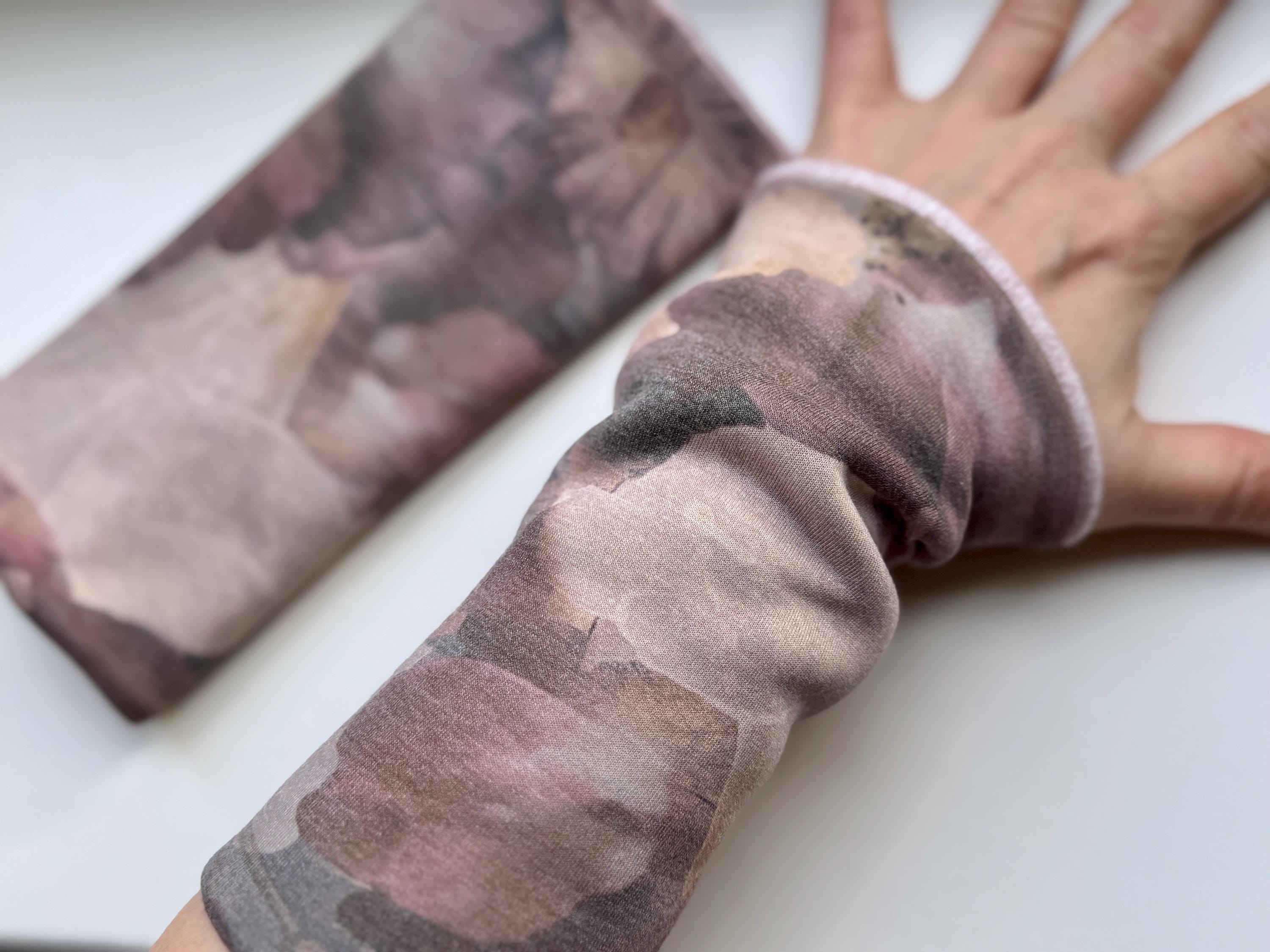 Matching arm warmers are available for the scarf. They are approximately 23 cm long and elastic. They are lined with a cozy jersey fabric in a pastel shade.